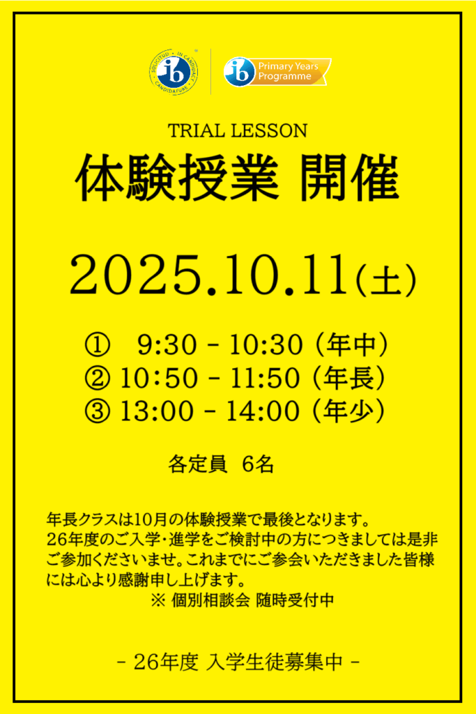 ★年長さんを対象とした体験授業は10月11日(土)にて最後となります★