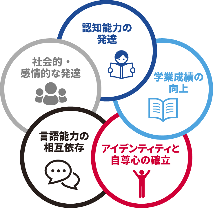母語で培われた言語能力は第二言語の学習にも役立ち、両言語をバランス良く発達させることで、より豊かな社会性と感情的な成長を促します。